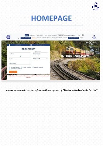 HOMEPAGE A new enhanced User Interface with an option of “Trains with Available Berths”