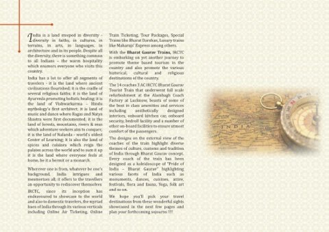 ndia is a land steeped in diversity - Train Ticketing, Tour Packages, Special